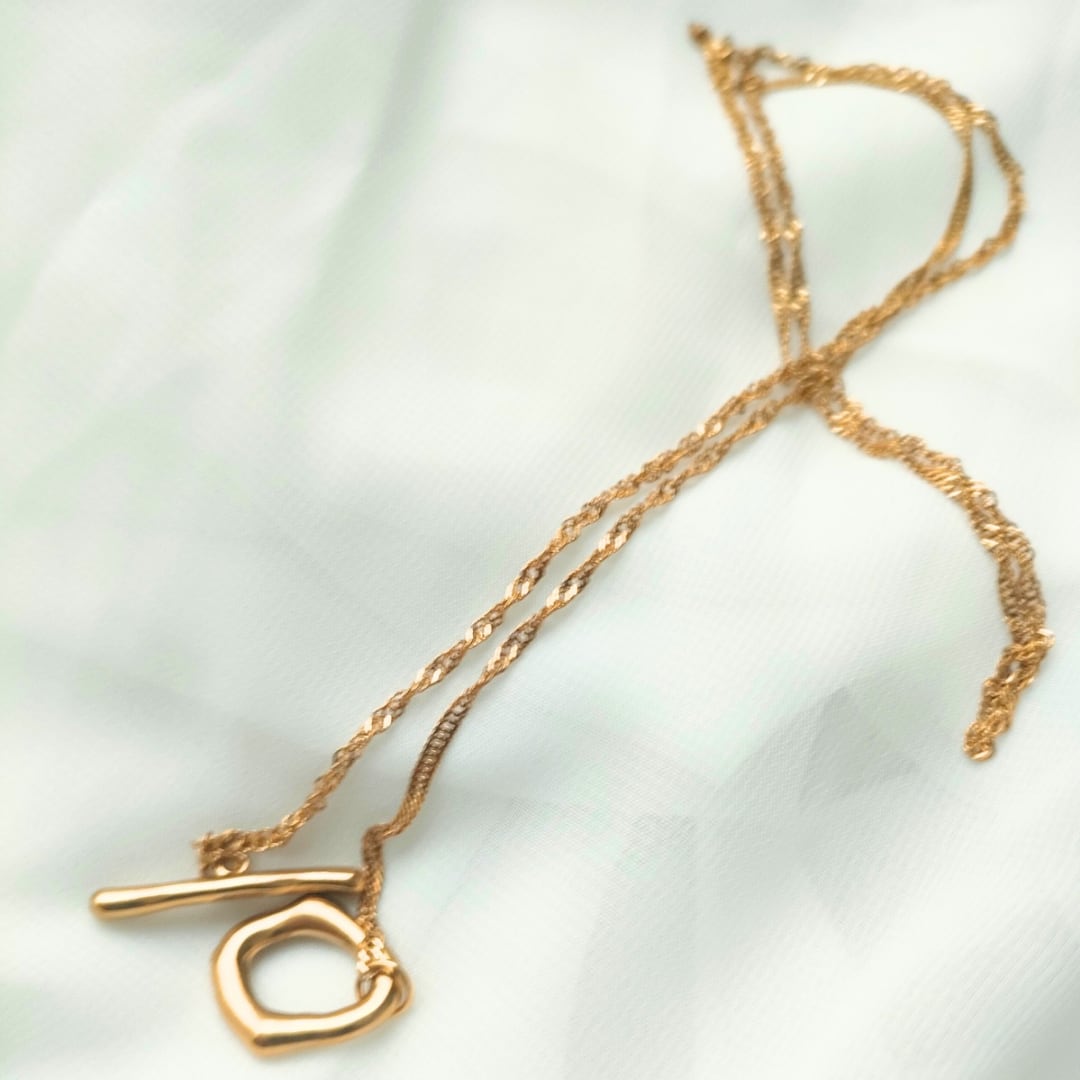 サージカルステンレス素材にイオンメッキコーティングされたアレルギーの出にくいスクリューチェーンに大きめマンテルを組み合わせました